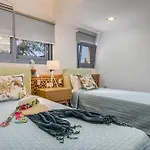 Vous pourrez profiter d'un espace de repas, équipé d'une cafetière/théière. Vous pouvez également utiliser un micro-ondes, un réfrigérateur et de la verrerie pour préparer votre propre repas. Les options de transport dans la région incluent l'arrêt de bus Venizelos Grave, situé dans une zone de 1 km. Cette villa dispose d'une terrasse pour se détendre après une journée bien remplie, ainsi que d'une piscine sur le toit.